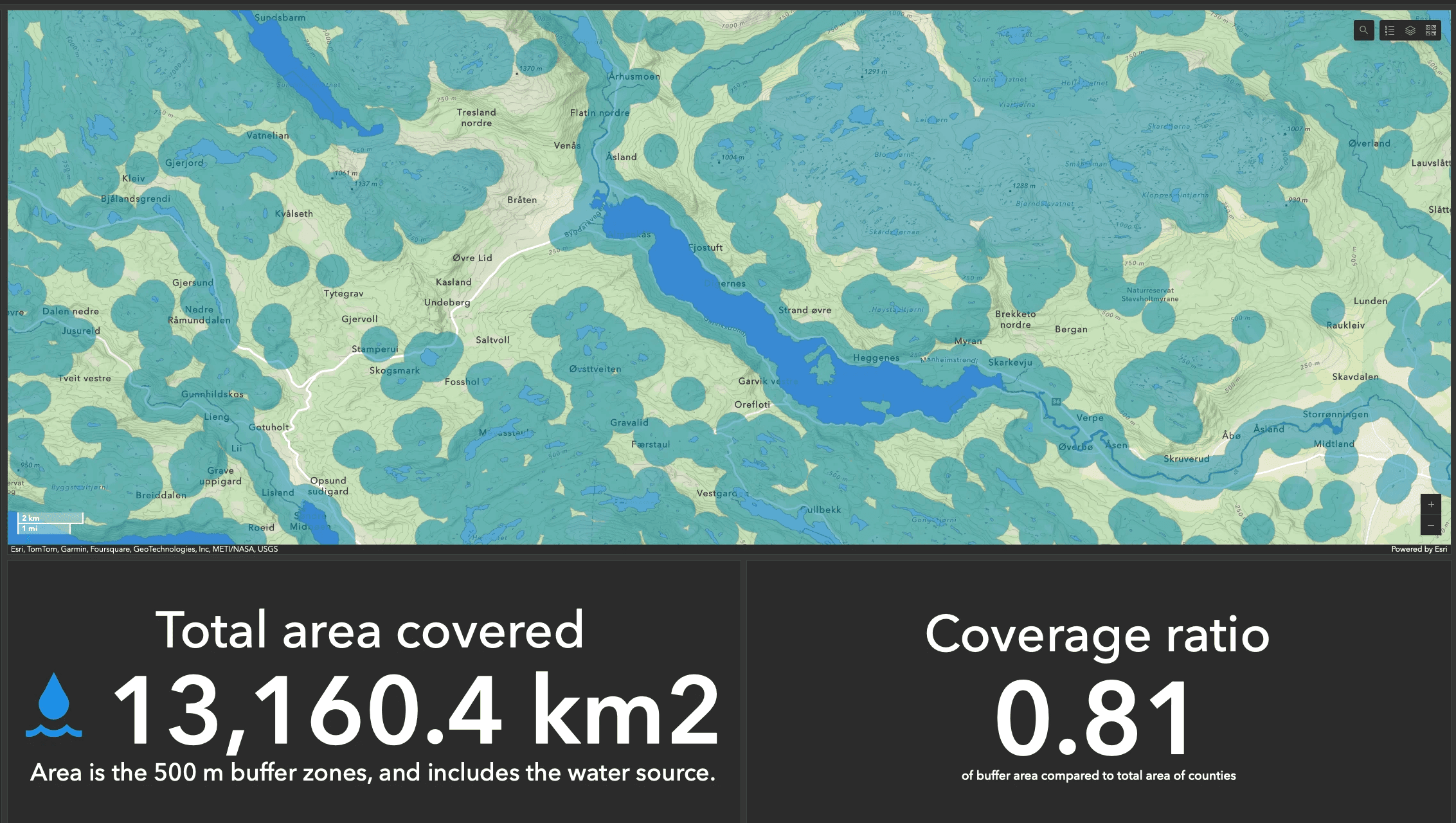 With a 500-meter hose, coverage reaches around 70% in southern Norway — and up to 81% in Telemark, the area most affected by wildfires.